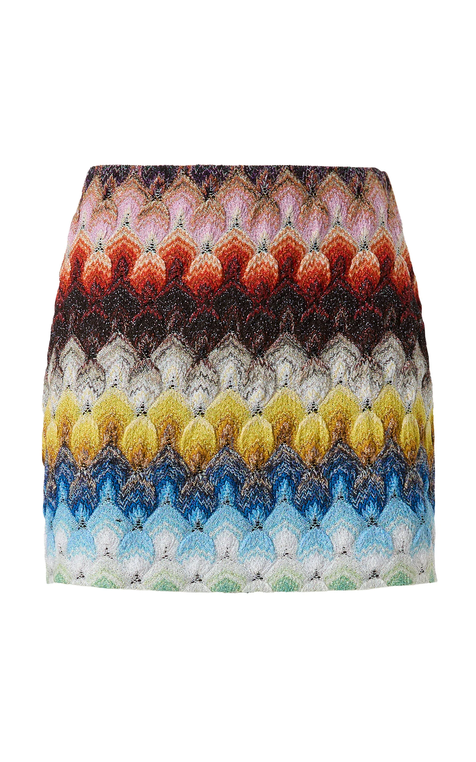 Few labels do relaxed glamour quite like storied Italian house Missoni. Showcasing the house's iconic knitwork, this mini skirt has a fitted silhouette with an elastic waist. Complete the look with the matching top. PRODUCT DETAILS - Spring '26 - Pull on - Composition: 85% rayon, 15% metal fiber - Dry clean - Made in Italy