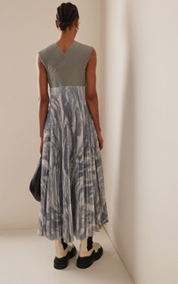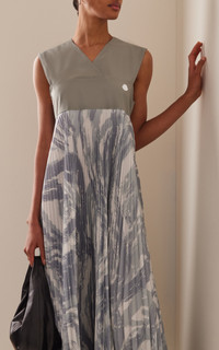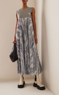 For the next round of Moncler's Genius collaboration, the luxury skiwear brand teamed up with HYKE, a womenswear brand based in Tokyo, Japan by designers Hideaki Yoshihara and Yukiko Ode. The collection draws inspiration from the design duo's extensive vintage workwear collection, re-imagined for today. This maxi features a flowing plisse skirt that hangs from a wrapped nylon bodice. Accessorize with lug-soled boots and a leather pouch. PRODUCT DETAILS - Zip fastening - Composition: 63% polyester, 37% elastomultiester; Skirt: 100% nylon - Dry clean only - Imported SIZE & FIT - Our model is 178cm / 5'10" and is wearing a IT 38 - Fits true to size, our fit specialist recommends taking your normal size - Designed for a slim fit