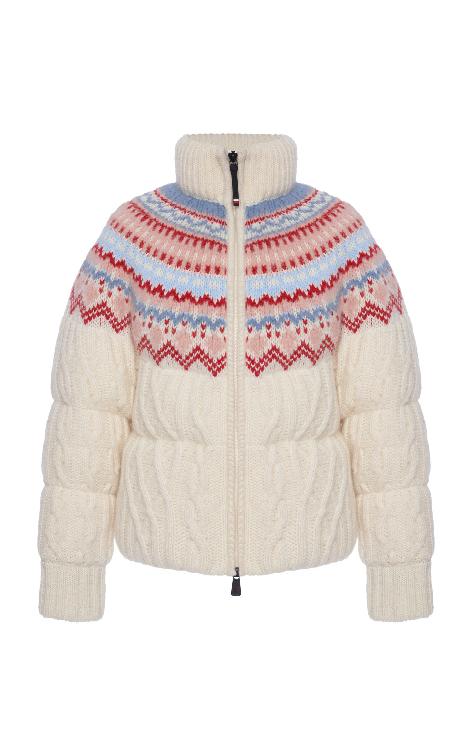 Named for the popular Monestier-de-Clermont ski resort in the French Alps, Moncler Grenoble is a leader in performance skiwear that utilizes its mountaineering expertise to craft designs that fuse fashion and function. This down-insulated puffer is crafted from a cable-knit wool-mohair blend that makes it ultra-soft to the touch. It's relaxed fit and preppy feel makes it an apres-ski favorite. PRODUCT DETAILS - Resort '25 - Zip fastening - Composition: wool-mohair blend with alpaca - Dry clean - Imported SIZE & FIT - Our model is wearing a size Small - Model is 5'9" with a 31" bust, 22" waist, and 35" hip - Designed for a relaxed fit