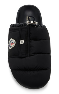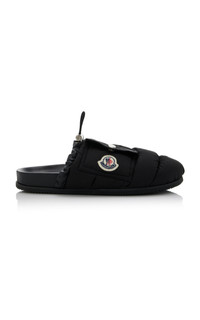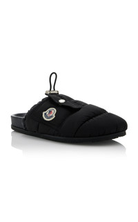 Named for the popular Monestier-de-Clermont ski resort in the French Alps, Moncler is a leader in performance skiwear that utilizes its mountaineering expertise to craft designs that fuse fashion and function. A riff on Moncler's iconic puffers, the 'Mon' mules are made from padded nylon with a drawstring upper. The contoured footbeds will mold to your foot's shape overtime. PRODUCT DETAILS - Slip on - Composition: nappa leather, nylon - Made in Italy