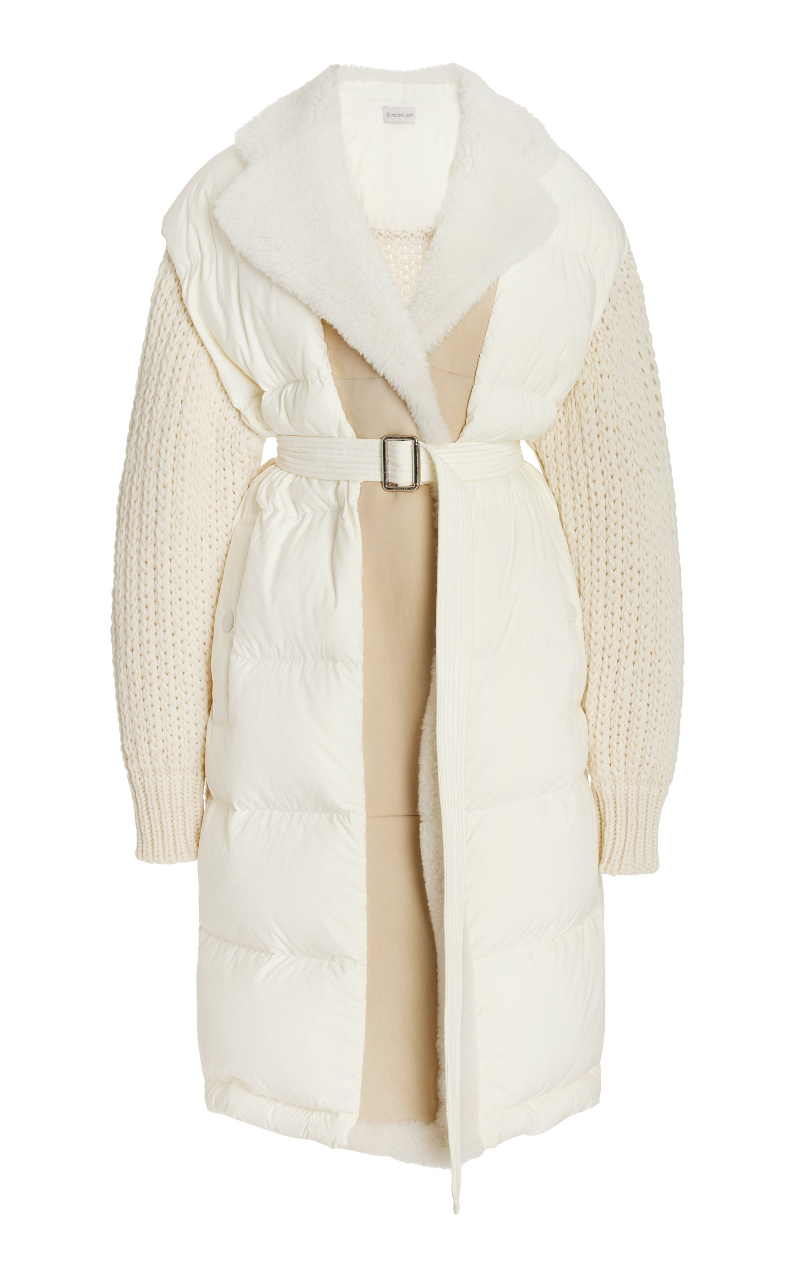 Named for the popular Monestier-de-Clermont ski resort in the French Alps, Moncler is a leader in apres-ski wear that utilizes its mountaineering expertise to craft designs that fuse fashion and function. Designed to provide warmth, this long cardigan is knit from a soft wool-blend with a down-filled front panel and luxurious shearling trim. Wear it layered under a coat or solo during milder days. PRODUCT DETAILS - Belt fastening - Composition: 90% virgin wool, 10% nylon; Lining: 70% nylon, 30% polyester; Padding: 90% down, 10% feathers; Details: 100% polyester; Fur: sheep - Dry clean - Imported SIZE & FIT - Our model is 180 / 5'11" and is wearing a size Small - Fits true to size, our fit specialist recommends taking your normal size - Designed for a relaxed fit