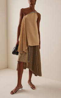 A semi-finalist for the 11th edition of the LVMH Prize for Young Fashion Designers, Niccolo Pasqualetti is known for his androgynous styles that reinterpret the sartorial codes of Italian heritage. PRODUCT DETAILS - Spring '25 - Slip on - Composition: 100% polyester; Chain: 100% aluminium - Designer color: Sand/ Silver - Dry clean - Made in Italy SIZE & FIT - Designed for a slim fit