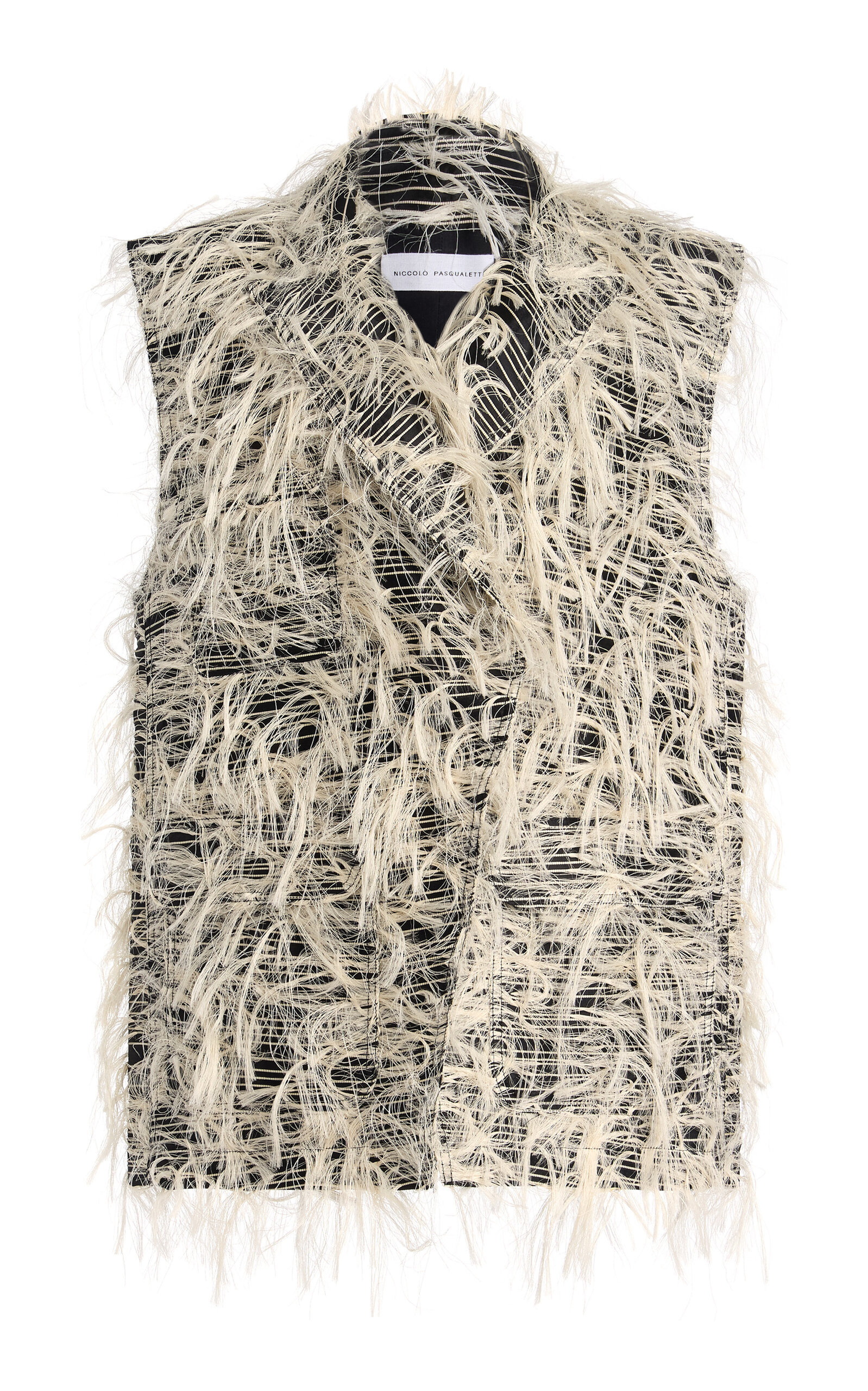 A semi-finalist for the 11th edition of the LVMH Prize for Young Fashion Designers, Niccolo Pasqualetti is known for his androgynous styles that reinterpret the sartorial codes of Italian heritage. PRODUCT DETAILS - Spring '25 - Button fastening - Composition: 50% cotton, 50% silk; Lining: 100% cotton - Designer color: Black/ Cream - Dry clean - Made in Italy SIZE & FIT - Designed for a slim fit