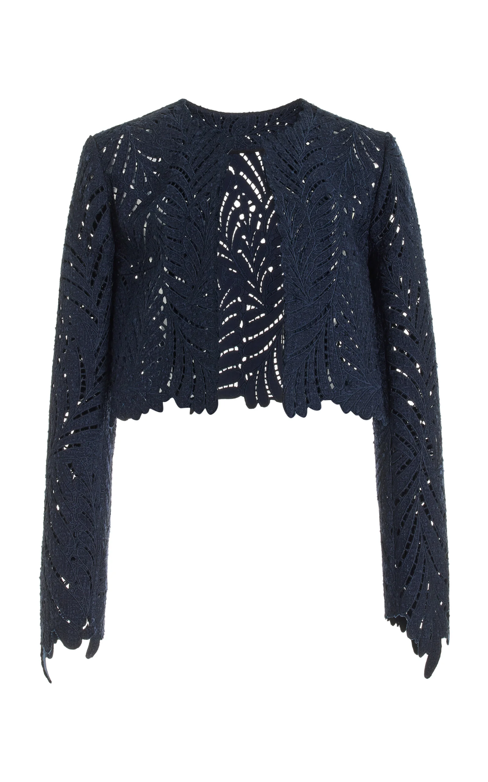PRODUCT DETAILS - As seen in the Oscar de la Renta Pre-Fall '24 collection - Slim fit, long sleeves, crew neck, cutouts - Unlined - Composition: 94% Virgin Wool, 3% Mohair, 2% Polyamide, 1% Elastane - Color: navy - Slips on - Made in Italy