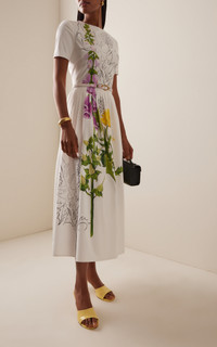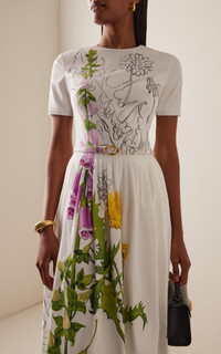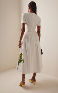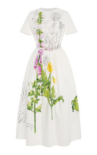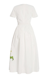 Dandelion-Printed Cotton-Poplin Midi Dress white