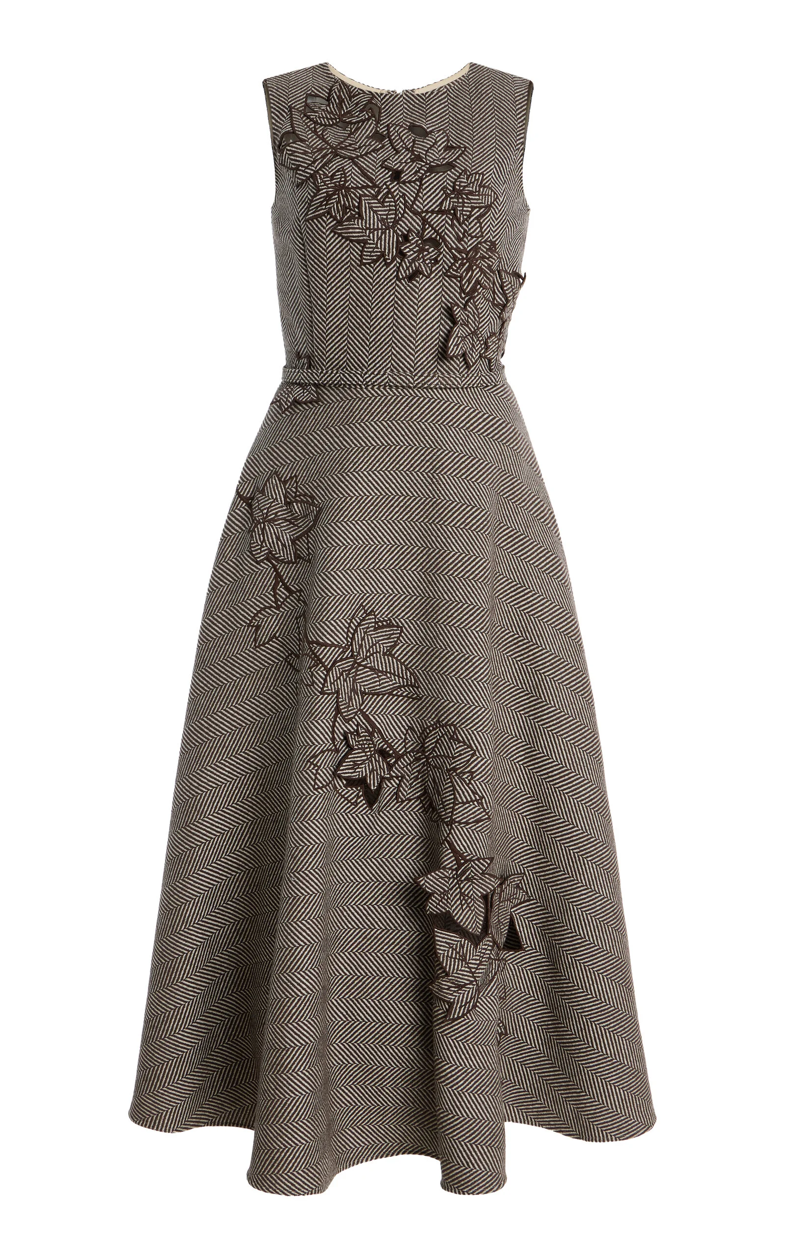 Embroidered Wool-Cashmere Midi Dress taupe