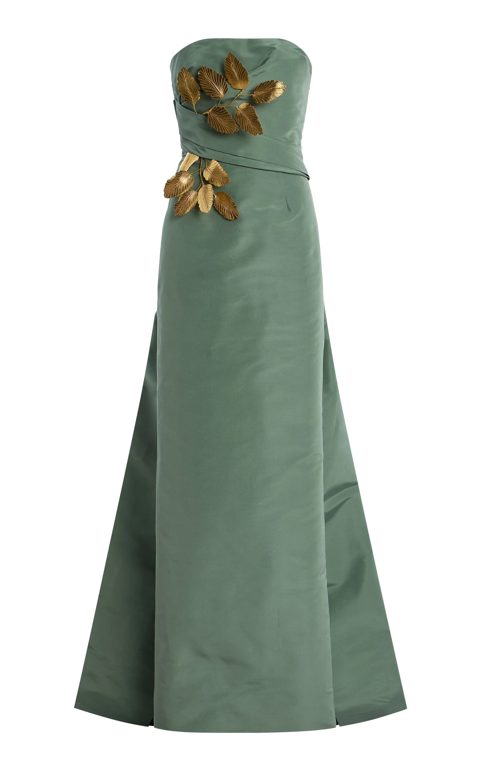 Gold-Leaf Detailed Silk Gown dark green