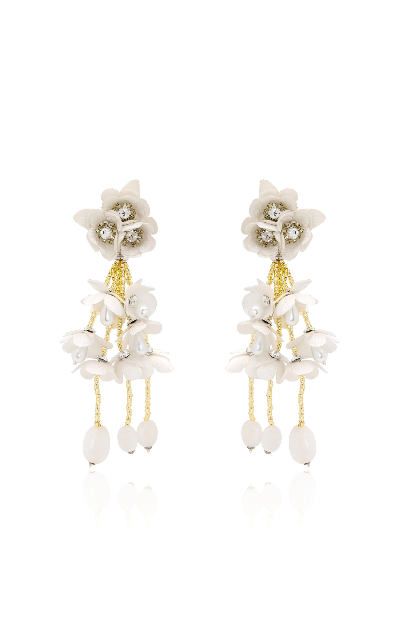 BEADED FLOWER DROP CLIP-ON EARRINGS