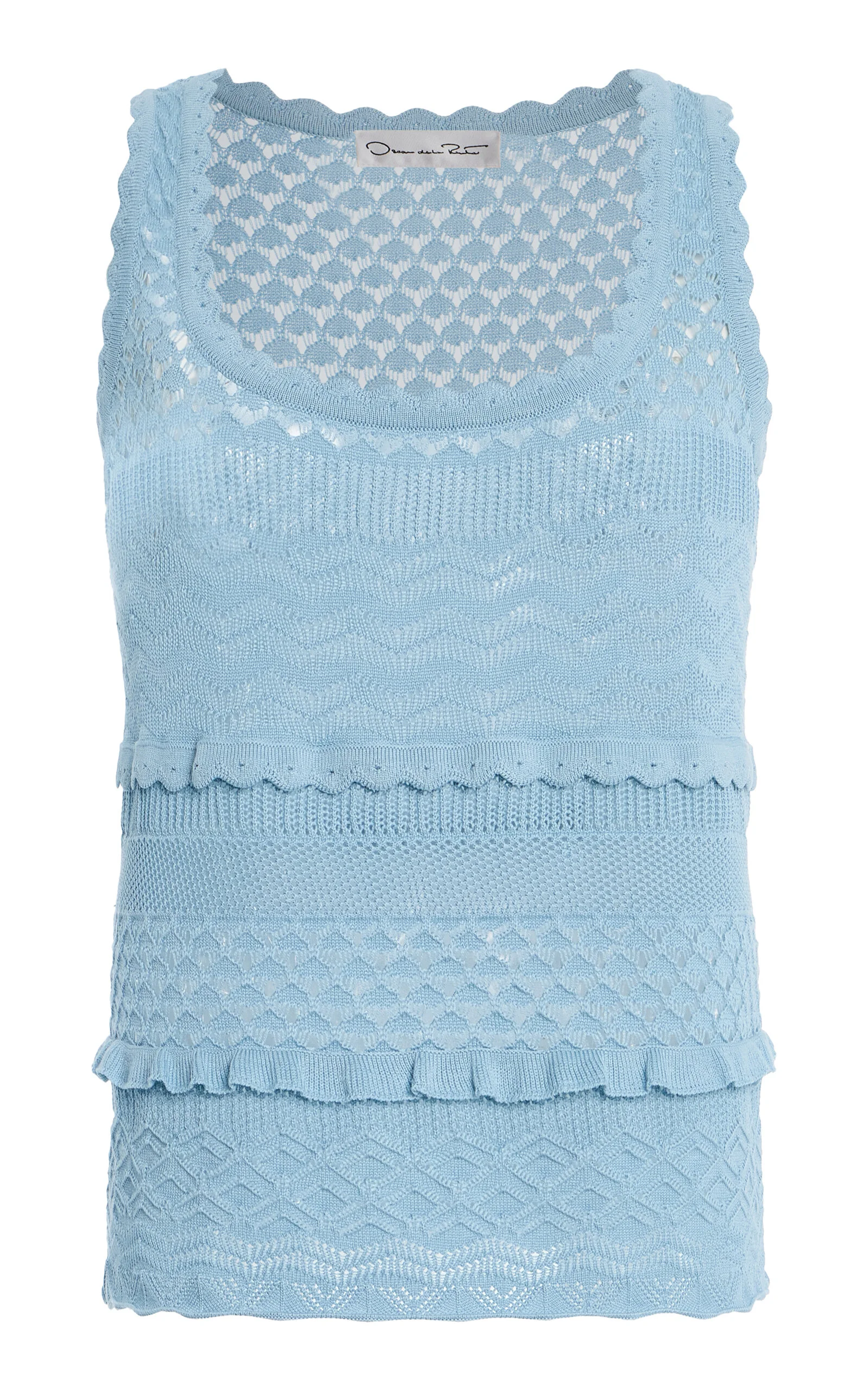 Mixed-Stitch Silk-Cotton Tank Top light blue
