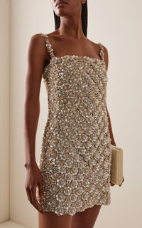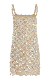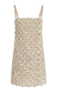 PRODUCT DETAILS - Slim fit, sleeveless, shoulder straps, square neck, embellishments - Zipper fastening - Composition: 100% Polyamide; Lining: 100% Silk - Color: Silver - Dry clean - Made In: United States of America - Resort '26