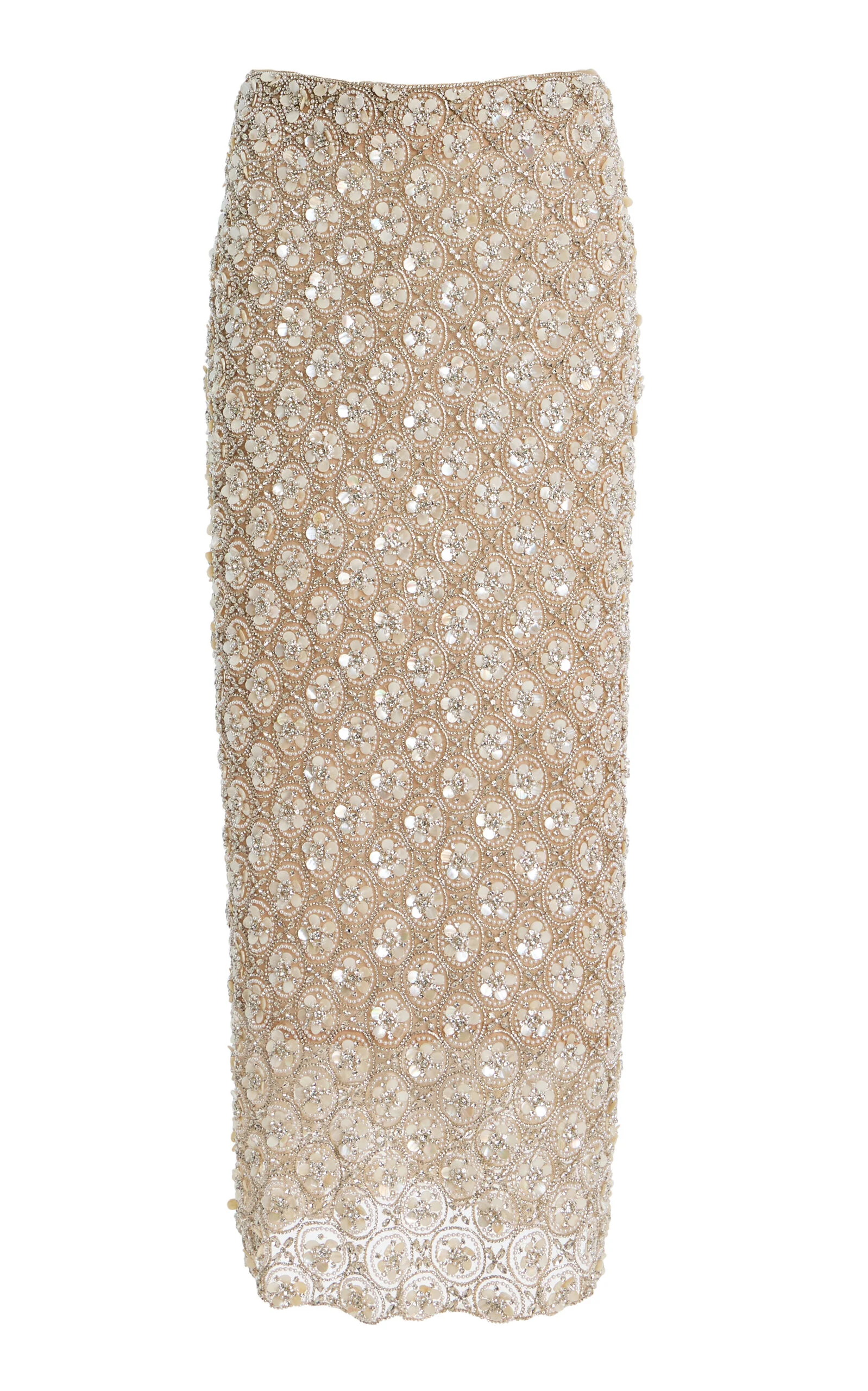 Mother Of Pearl-Embellished Tulle Midi Skirt silver