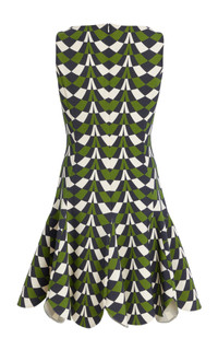PRODUCT DETAILS - Sleeveless, scoop neck, flared hem, mini hem - Concealed zip fastening - Lined - Composition: 94% Virgin Wool, 5% Elastane, 1% Polyamide; Skirt Hem: 100% Silk - Color: Fern Multi - Dry clean only - Pre-Fall '25