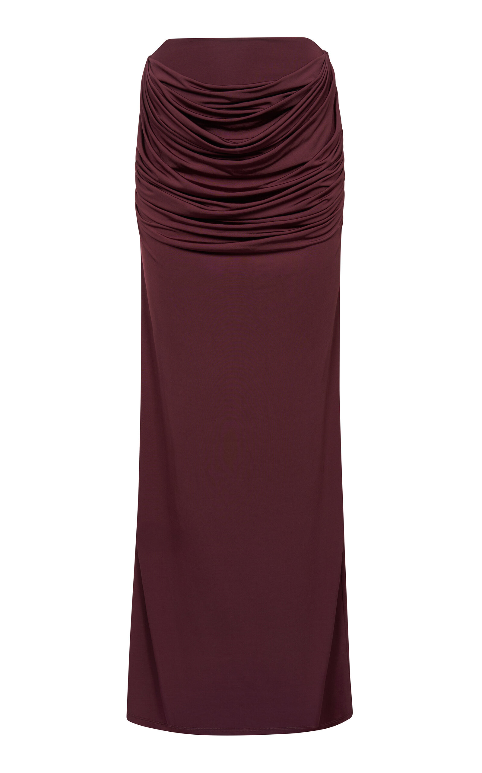 ELEVATED JERSEY PRODUCT DETAILS - Fall-Winter '25 - Slim fit, low rise, draped detailing throughout, column silhouette maxi - Lined - Composition: 93%Viscose 7%Spandex - Side Seem Zip Fastening - *Dry clean only - Made in China