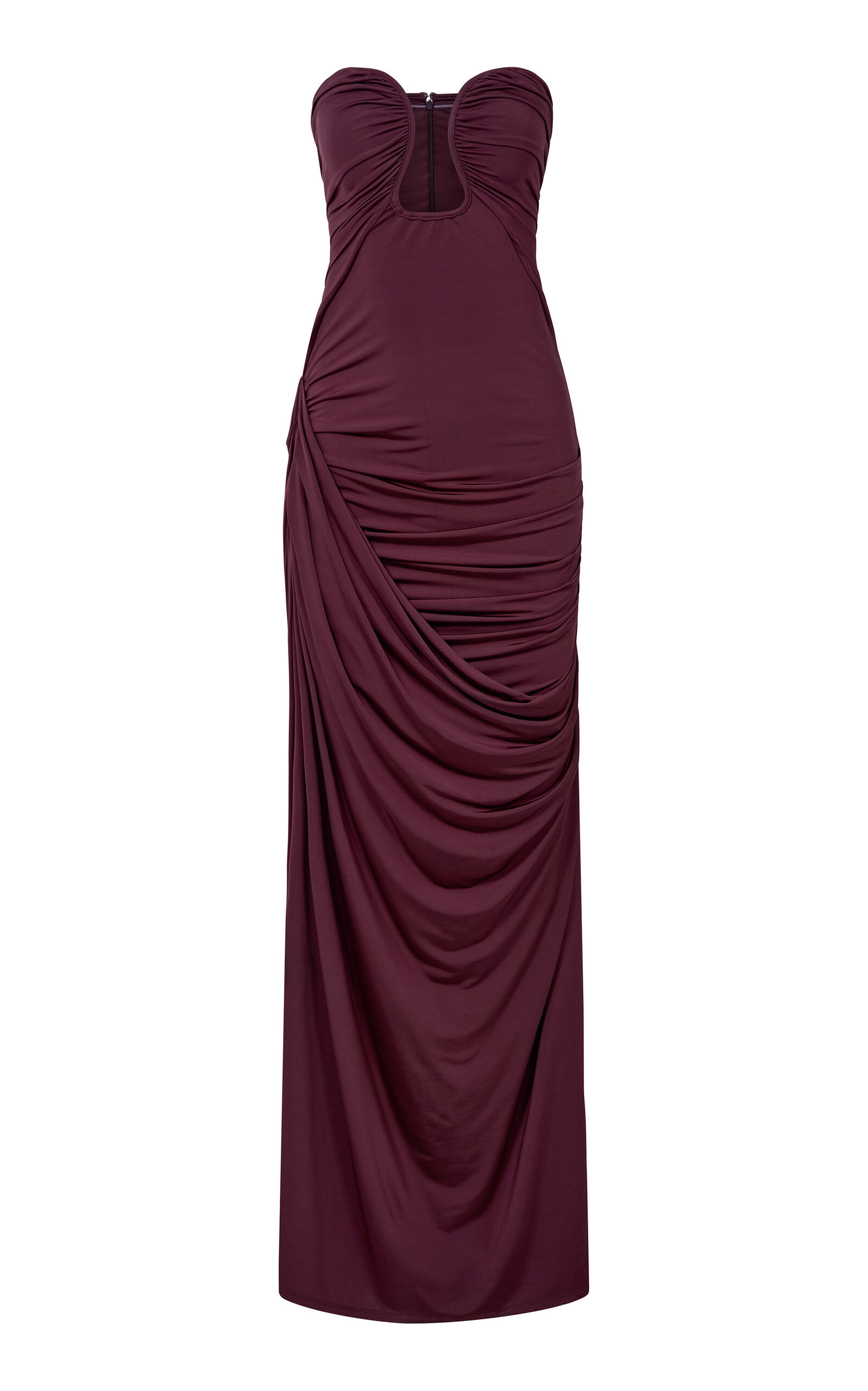 ELEVATED JERSEY PRODUCT DETAILS - Fall-Winter '25 - Slim fit, keyhole cutout strapless neckline, draped detailing by the skirt, column silhouette maxi - Lined - Composition: 93%Viscose 7%Spandex - Zip Fastening Through Back - *Dry clean only - Made in China
