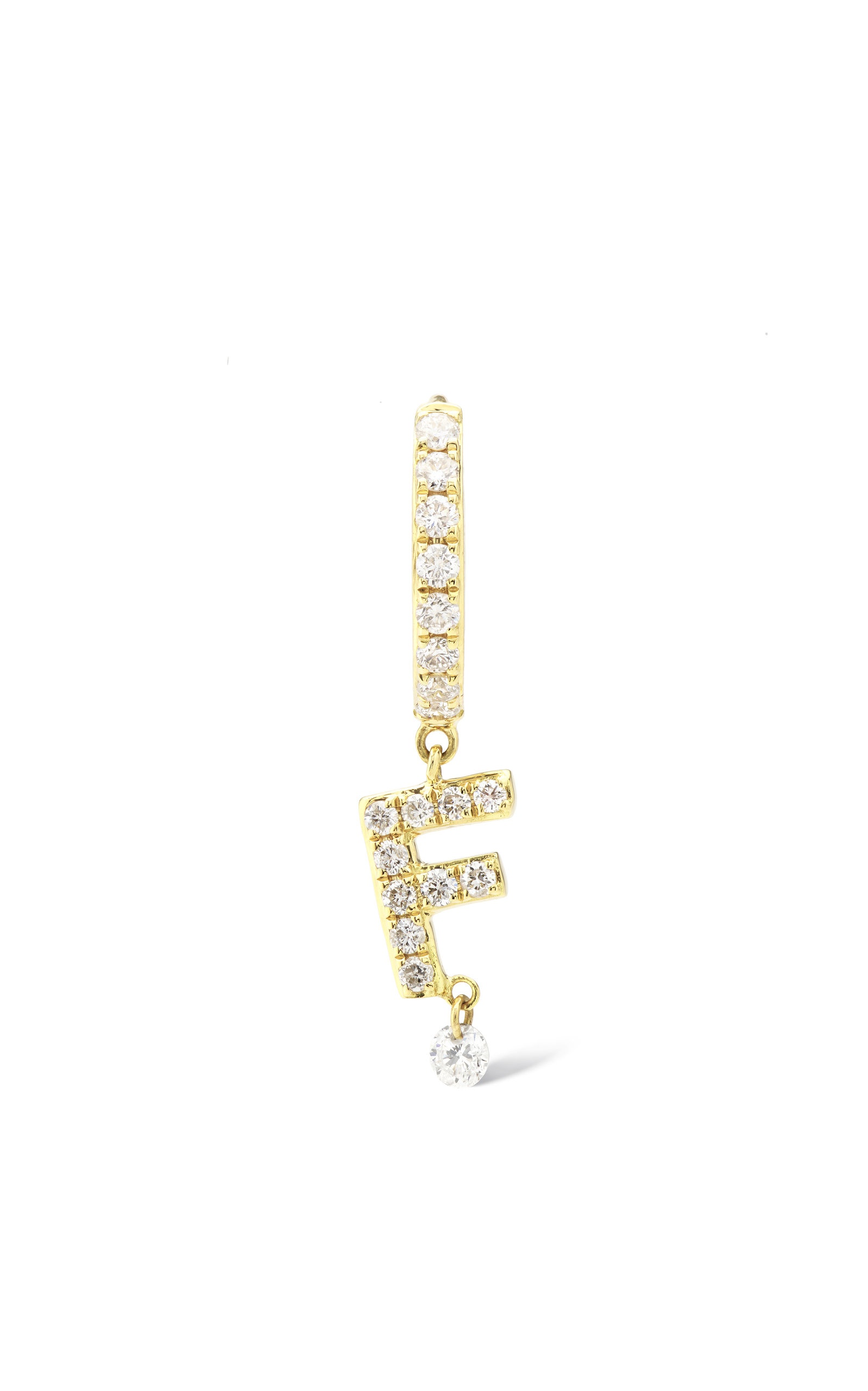 18K Yellow Gold Alphabet Letter Diamond Earring-F gold