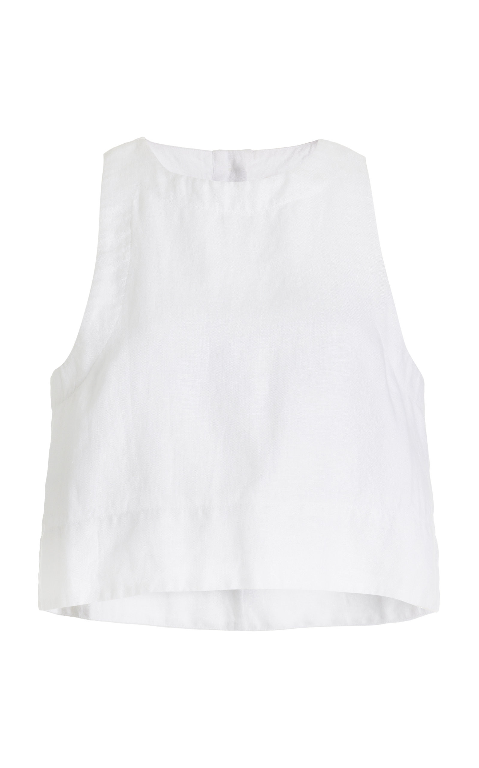 Slow-fashion Aussie label Posse designs easy-to-wear pieces in high quality fabrics, so they can have a permanent place in your wardrobe. This linen crewneck top is sleeveless with a relaxed fit and cropped hem. Wear yours with sandals and a high waisted skirt in a matching hue. PRODUCT DETAILS - Zip fastening - Composition: 100% linen - Dry clean - Imported SIZE & FIT - Our model is 175cm/ 5'9" and wearing a size Small - Fits true to size, our fit specialist recommends taking your normal size
