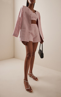 Exclusive Riviera Perri Checked Linen Shorts pink