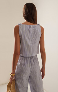 Centered on the principles of slow fashion, Aussie label POSSE is committed to producing the finest fabrications in limited quantities. Each piece is designed to be loved and worn for years to come — to be borrowed, swapped, passed down and cherished across a lifetime. Made from naturally breathable cotton, the 'Romeo' top has a boxy, cropped silhouette with a high neckline and bows at the shoulders. Pair with the matching pant. PRODUCT DETAILS - Resort '25 - Zip fastening - Composition: 100% cotton - Dry clean - Imported SIZE & FIT - Designed for a boxy fit