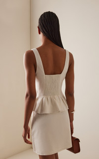 Centered on the principles of slow fashion, Aussie label POSSE is committed to producing the finest fabrications in limited quantities. Each piece is designed to be loved and worn for years to come — to be borrowed, swapped, passed down and cherished across a lifetime. Crafted from premium linen, the 'Rosalie' top is designed for a close, flattering fit. It features an elegant scoop neckline, peplum hem and shirring at the back for comfort. PRODUCT DETAILS - Pre-Fall '25 - Slip on - Composition: 100% linen - Designer color: Cream - Dry clean - Imported SIZE & FIT - Designed for a slim fit