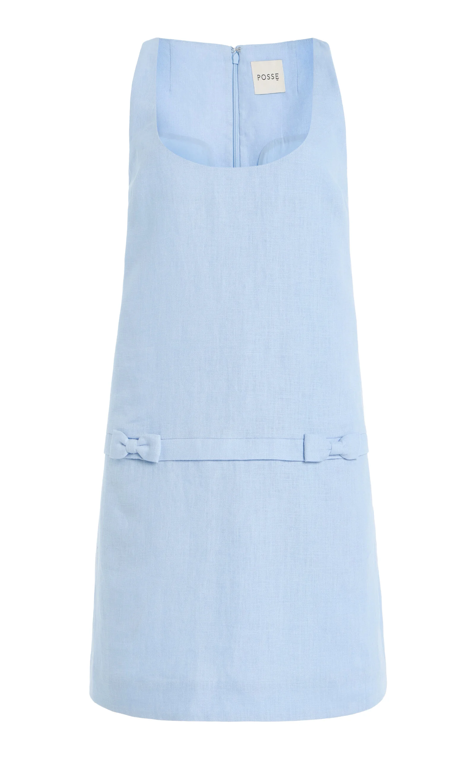 Centered on the principles of slow fashion, Aussie label POSSE is committed to producing the finest fabrications in limited quantities. Each piece is designed to be loved and worn for years to come — to be borrowed, swapped, passed down and cherished across a lifetime. 'Harper' is a mini shift dress made from linen with a scoop neck and bow at the drop waist. PRODUCT DETAILS - Resort '26 - Zip fastening - Composition: 100% linen - Dry clean - Imported
