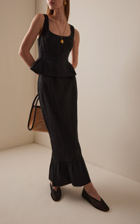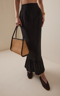 Centered on the principles of slow fashion, Aussie label POSSE is committed to producing the finest fabrications in limited quantities. Each piece is designed to be loved and worn for years to come — to be borrowed, swapped, passed down and cherished across a lifetime. The Matilda Column Skirt is cut from premium linen in a sleek column silhouette that falls effortlessly to a frilled maxi hem. It sits comfortably on the high-rise waist and features a subtle black split to ensure ease of movement. Pair with the matching top. PRODUCT DETAILS - Pre-Fall '25 - Zip fastening - Composition: 100% linen - Dry clean - Imported SIZE & FIT - Our model is wearing a size Small - Model is 5'10" with a 32" bust, 23.5" waist, and 34.5" hip