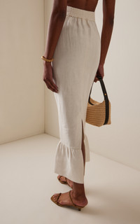 Centered on the principles of slow fashion, Aussie label POSSE is committed to producing the finest fabrications in limited quantities. Each piece is designed to be loved and worn for years to come — to be borrowed, swapped, passed down and cherished across a lifetime. The Matilda Column Skirt is cut from premium linen in a sleek column silhouette that falls effortlessly to a frilled maxi hem. It sits comfortably on the high-rise waist and features a subtle black split to ensure ease of movement. Pair with the matching vest. PRODUCT DETAILS - Pre-Fall '25 - Zip fastening - Composition: 100% linen - Designer color: Cream - Dry clean - Imported SIZE & FIT - Our model is wearing a size Small - Model is 5'10" with a 32" bust, 23.5" waist, and 34.5" hip