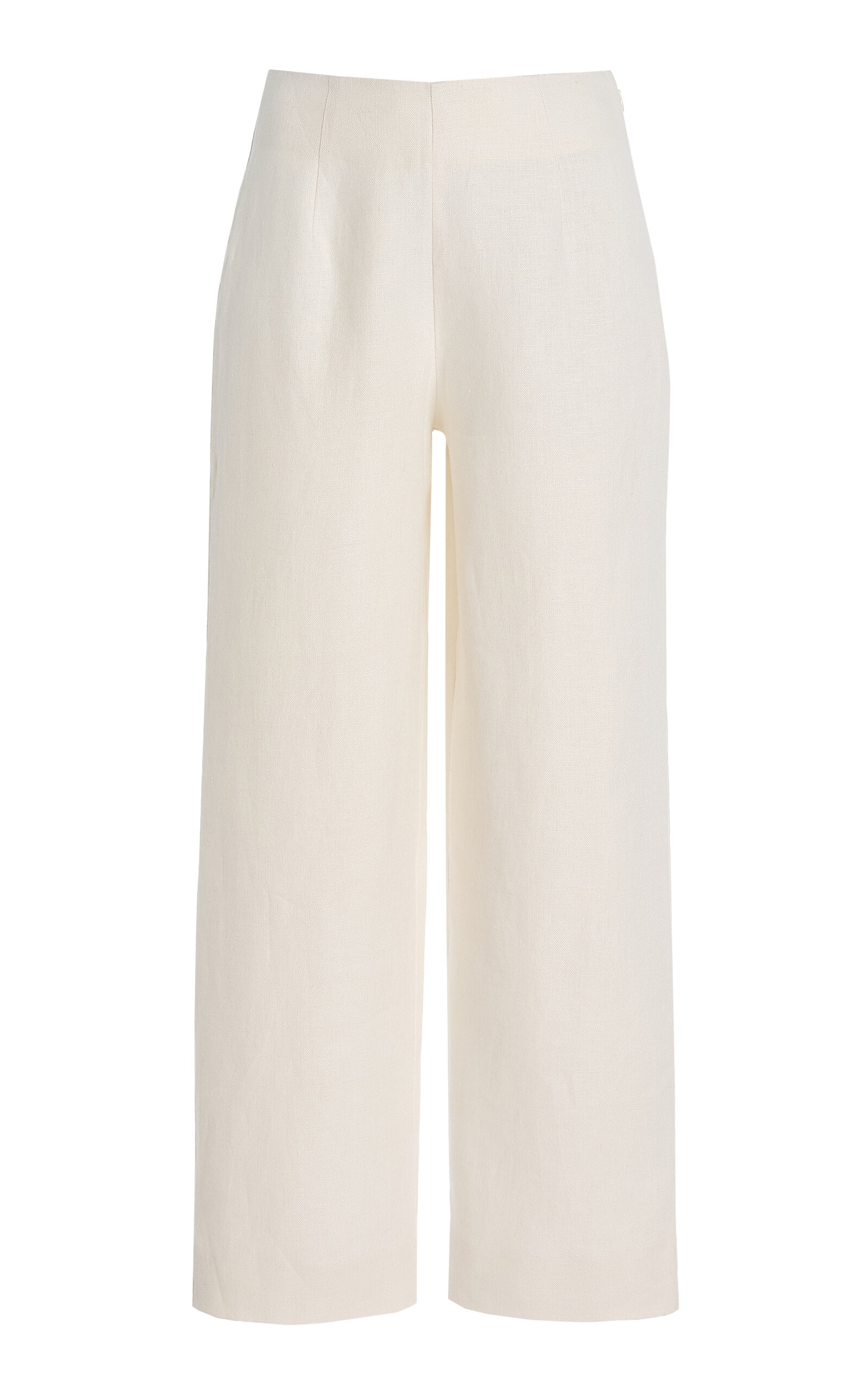 Centered on the principles of slow fashion, Aussie label POSSE is committed to producing the finest fabrications in limited quantities. Each piece is designed to be loved and worn for years to come — to be borrowed, swapped, passed down and cherished across a lifetime. Cut from hand-loomed linen, 'Noelle' pants have a streamlined silhouette with a high-rise waist and wide legs that hit at the ankle. PRODUCT DETAILS - Pre-Fall '25 - Zip fastening - Composition: 100% linen - Designer color: Cream - Dry clean - Imported SIZE & FIT - Our model is wearing a size Small - Model is 5'11" with a 30" bust, 24" waist, and 34" hip - Designed for a regular fit