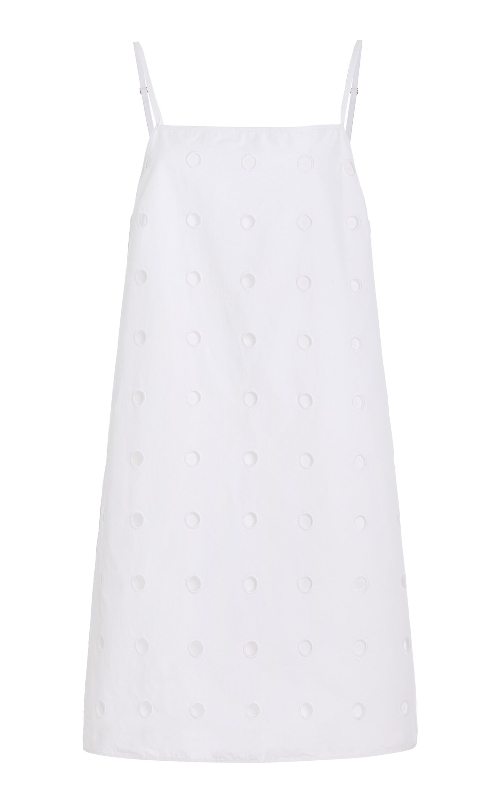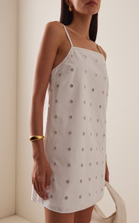 Centered on the principles of slow fashion, Aussie label POSSE is committed to producing the finest fabrications in limited quantities. Each piece is designed to be loved and worn for years to come — to be borrowed, swapped, passed down and cherished across a lifetime. Made from an airy weave using cotton, the 'Peggy' mini has a relaxed silhouette with embroidered dots and a lightweight lining. PRODUCT DETAILS - Pre-Fall '25 - Zip fastening - Composition: 60% tencel, 40% cotton - Designer color: Vintage White - Dry clean - Imported SIZE & FIT - Our model is wearing a size Small - Model is 5'11" with a 30" bust, 24" waist, and 34" hip - Designed for a relaxed fit
