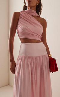 Centered on the principles of slow fashion, Aussie label POSSE is committed to producing the finest fabrications in limited quantities. Each piece is designed to be loved and worn for years to come — to be borrowed, swapped, passed down and cherished across a lifetime. The 'Solene' top is made from chiffon that wraps around the bodice and drapes over one shoulder. Pair with the matching skirt. PRODUCT DETAILS - Resort '26 - Slip on - Composition: 100% viscose; Contrast: 97% polyester, 3% elastane - Designer color: Mauve - Dry clean - Imported