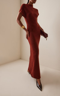Proenza Schouler continue to do what they do best — an elevated uniform you’ll want to be seen stepping out in. The Abie Dress in Clean Boiled Wool is knitted to a slim, ankle-length silhouette with a draped-effect waist. Finished with a mock neckline and wide short sleeves PRODUCT DETAILS - Resort '26 - Zip fastening - Composition: 38% polyamide, 36% extra-fine merino wool , 25% baby alpaca, 1% elastane - Designer color: Cinnamon - Dry clean - Imported