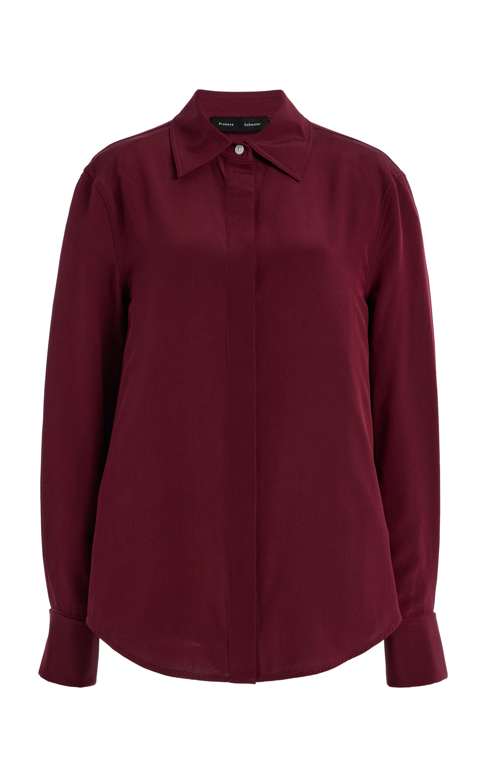 Proenza Schouler continues to evolve their signature silhouettes with irresistible updates and iterations. PRODUCT DETAILS - Button fastening through front - Composition: 100% Silk Binding (0%): 100% Polyester - Color: Ox Blood - Dry clean - Imported