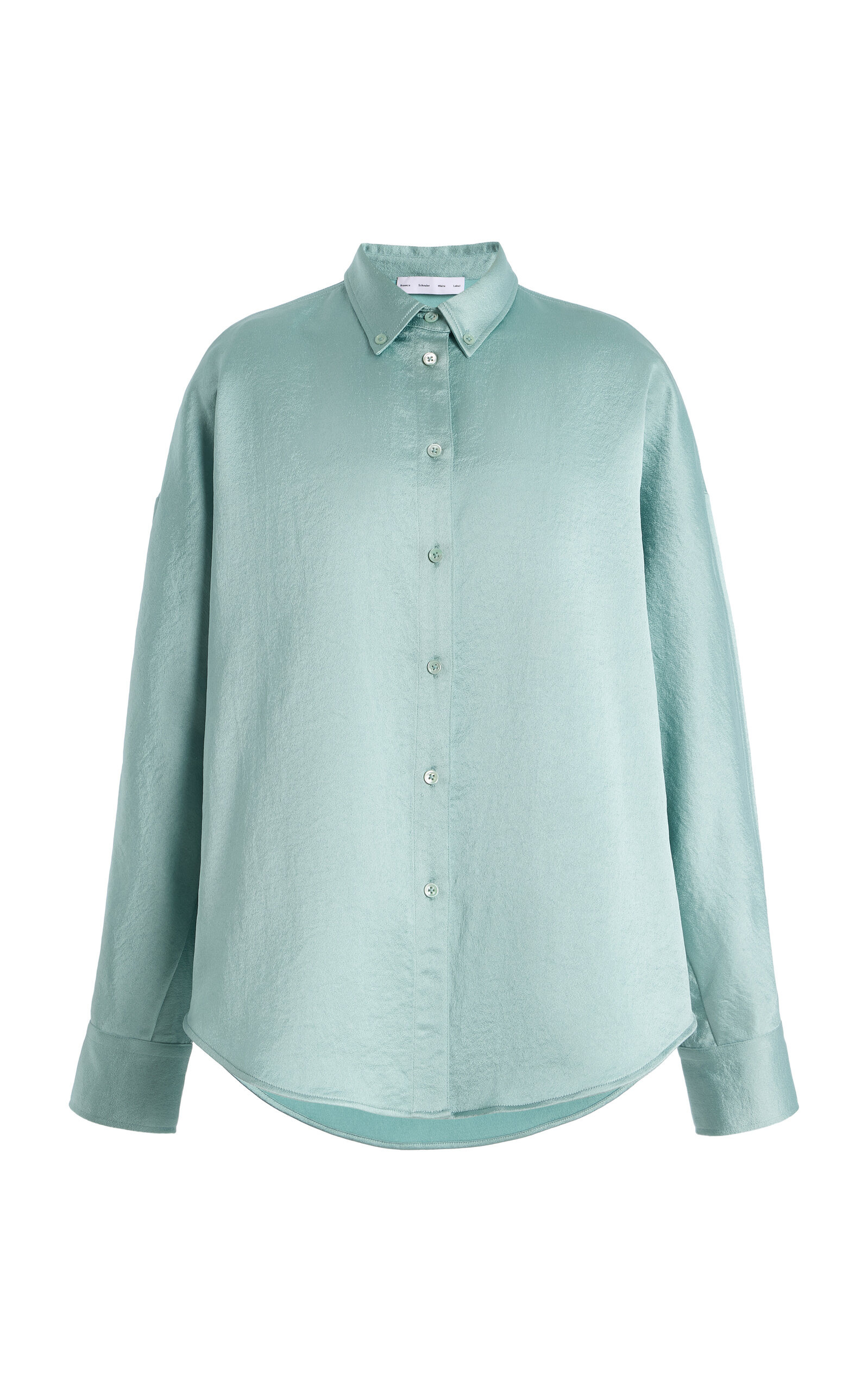 Proenza Schouler White Label was created to bridge the gap between the high-end and everyday. The Caroline Shirt features a lightweight, relaxed silhouette with a point collar. Completed with buttoned self-ties to gather the waist. PRODUCT DETAILS - Resort '26 - Button fastening - Composition: 100% polyester - Designer color: Sea Glass - Dry clean - Imported