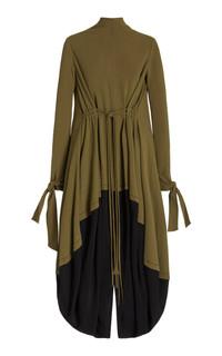 PRODUCT DETAILS - As featured on the Fall '22 runway, just add sleek black accessories for a chic day-to-night look - Relaxed fit, long sleeves, mockneck, cinch tie at waist, maxi length, , unlined - Zipper fastening at back - Composition: 93% viscose, 7% elastane with 70% triacetate, 30% polyester - Dry Clean Only - Made in Italy