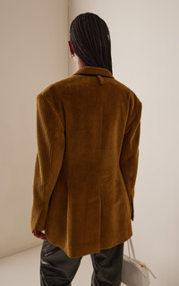 PRODUCT DETAILS - Single-breasted, notched lapels, relaxed tailoring - Button fastening through front - Lined - Composition: 100% Cotton; Lining: 57% Viscose, 43% Polyester - Color: olive - Dry clean only - Fall/Winter '25