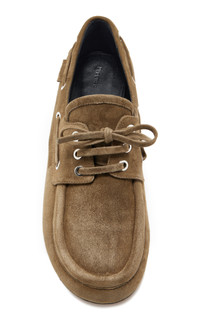 PRODUCT DETAILS - Loafers silhouette, suede body, lace up detailing, round toe - Composition: kidsuede leather - Made in Italy SIZE & FIT - Heel height measures 15 mm
