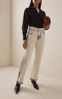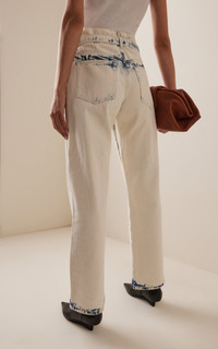 Proenza Schouler continue to do what they do best — an elevated uniform you’ll want to be seen stepping out in. The Ellsworth Jean features a slouchy boyfriend cut. Designed with stretch and detailed with a monogram front button closure, these jeans come complete with a matching denim waist belt. PRODUCT DETAILS - Pre-Fall '25 - Please note: Every garment is made unique and will age over time as such due to bleaching technique - Zip fly fastening - Composition: 99% organic cotton, 1% elastane - Designer color: Bleach Out - Dry clean - Made in Portugal SIZE & FIT - Our model is wearing a size 26 - Model is 5'9.5" with a 32" bust, 24" waist, and 35.5" hip - Designed for a relaxed fit