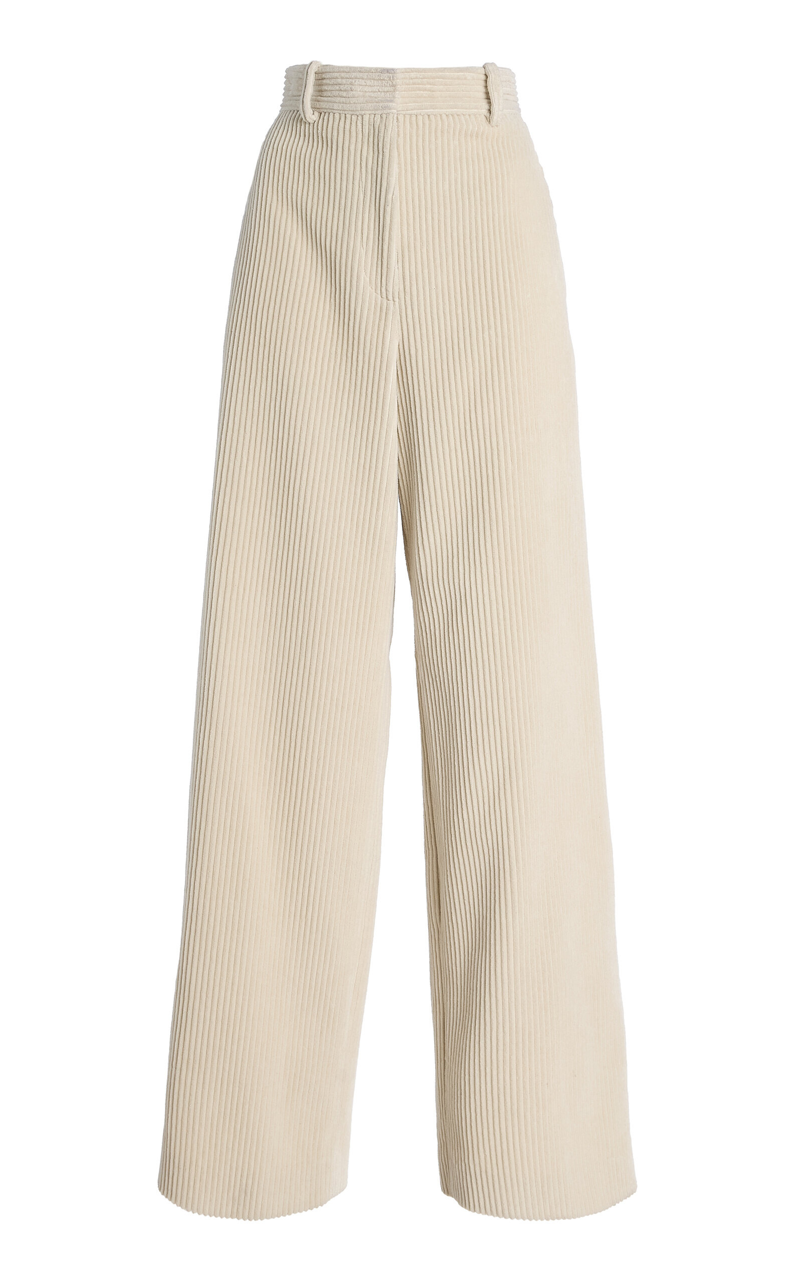 PRODUCT DETAILS - High-rise paperbag waist, loose oversized fit, wide-cut leg - Concealed zip and hook fastening - Composition: 100% Cotton; Pocketing: 100% Cotton - Color: off-white - Dry clean only - Fall/Winter '25
