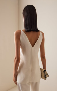 Under the helm of Creative Directors Lazaro Hernandez and Jack McCollough, Proenza Schouler continues to evolve their signature silhouettes with irresistible updates and iterations. Loose, airy, and relaxed. This 'Mitchell' tank top is crafted from smooth crepe with an angular V-cut neck and back. PRODUCT DETAILS - Pre-Fall '25 - Slip on - Composition: 51% Viscose, 26% Linen, 23% Cotton - Dry clean - Imported SIZE & FIT - Our model is wearing a size US 2 - Model is 5'9.5" with a 32" bust, 24" waist, and 35.5" hip - Designed for a relaxed fit