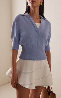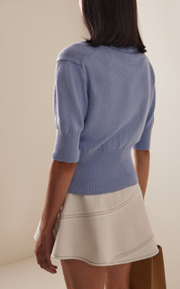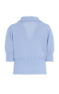 PRODUCT DETAILS - Regular fit, V neckline with collar, half-sleeved, ribbed hemline cropped shirt - Slip-On - Unlined - Composition: Yarn A(0%): 92% Cotton, 8% Polyamide - Color: light blue - Dry clean only - Pre-Fall '25
