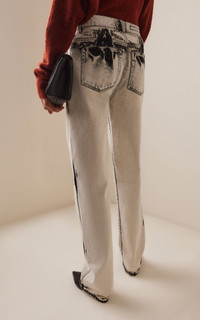 Proenza Schouler continues to evolve their signature silhouettes with irresistible updates and iterations. The Ryman Jean in Garment Printed Denim features a mid-rise and classic straight leg silhouette. Completed with a signature monogram button closure. This piece is crafted uniquely through a specialized garment printing process. PRODUCT DETAILS - The screen printing on the front and back of the garment creates natural imperfections on the finished surface where the dye doesn’t fully saturate. These imperfections contribute to the beauty and artisanal nature of each piece, as no two are alike. - Resort '26 - Button fly fastening - Composition: 100% organic cotton; Lining: 65% polyester, 35% cotton - Designer color: Fade Out Black - Machine wash - Imported