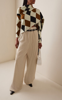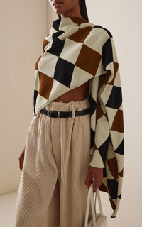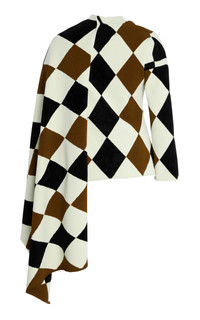 PRODUCT DETAILS - High neck, long sleeve, slanted drapery with a cropped hem - Slip on - Composition: 83% Viscose 17% Polyester; 63% Viscose 37% Polyamide - Color: brown - Dry clean only - Fall/Winter '25