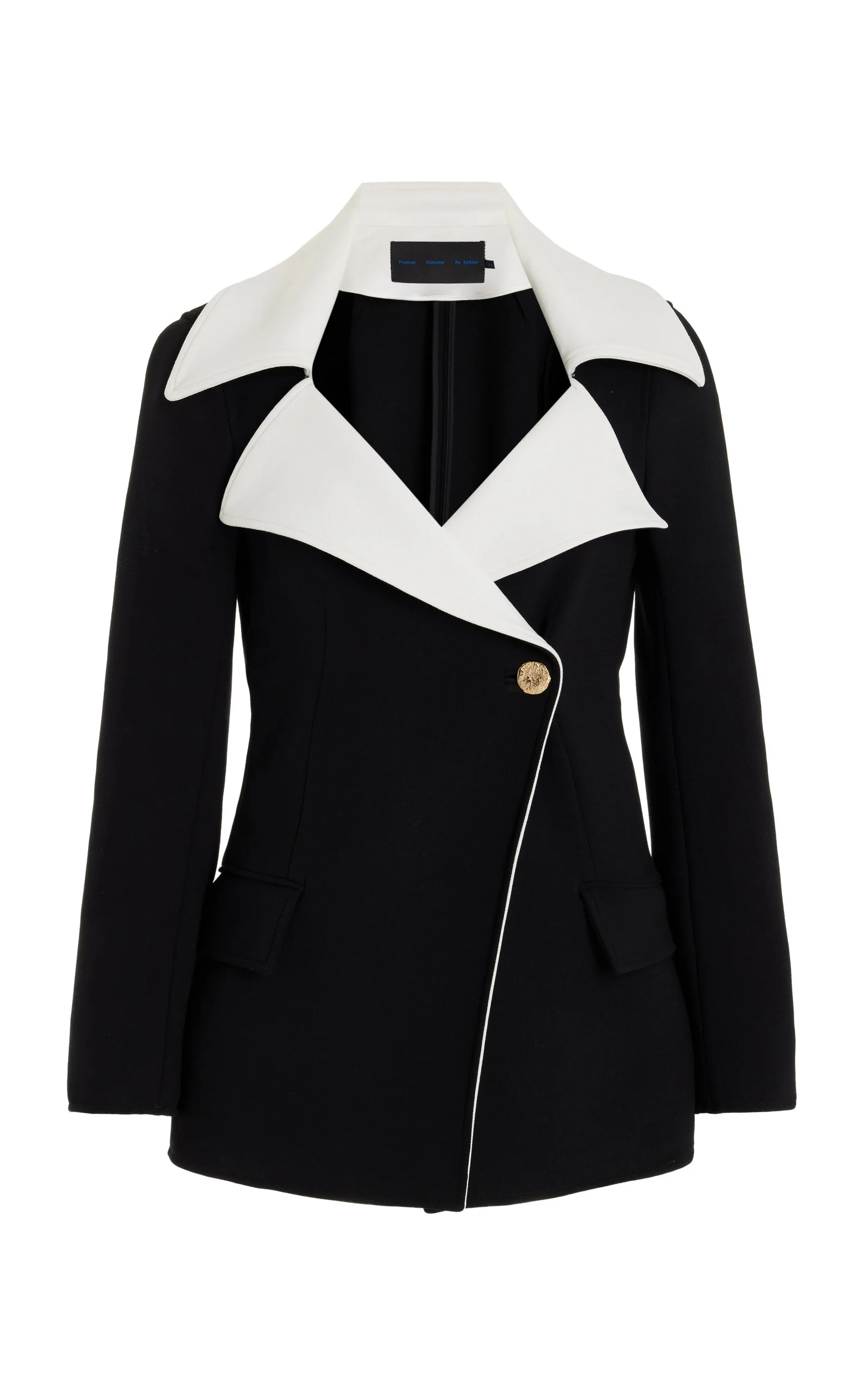 For their latest collection, Jack McCollough and Lazaro Hernandez imbue their urban, intellectual-cool vision with touches of playful frivolity. Made from wool, this fitted blazer features a contrasting wide lapel with a gold-tone button closure. Wear yours with loafers and cropped pants from the brand. PRODUCT DETAILS - Button fastening along front - Composition: wool - Dry clean only - Imported SIZE & FIT - Our model is 175cm/ 5'9" and wearing a US 2 - Fits true to size, our fit specialist recommends taking your normal size