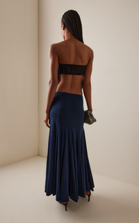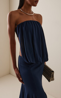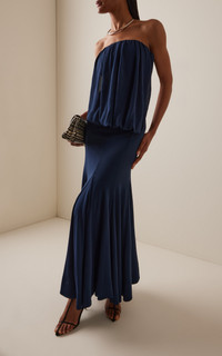 PRODUCT DETAILS - Slim fit, strapless, open-sides that shows the waist, drop waist silhouette maxi dress - Slip-On - Lined - Composition: Self(0%): 100% Viscose Lining(0%): 100% Polyester Power Mesh(0%): 90% Nylon 10% Elastane - Color: navy - Dry clean only - Pre-Fall '25