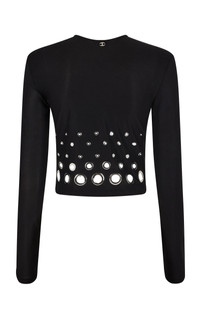 BLACK LONG SLEEVED CROP TOP IN JERSEY SECOND SKIN