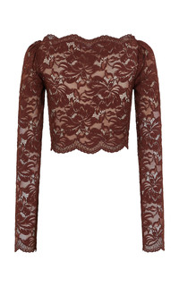 Each season, Julien Dossena builds off the last, championing Rabanne’s house codes and vintage-inspired luxuries while encapsulating our impulse to let go of tradition and try something new. This coordinating top is made from floral-embroidered lace, lined for discretion across the bust. The style boasts a sculpting fit with a boat neck and long sleeves. Wear with the matching skirt. PRODUCT DETAILS - Fall/Winter ‘25 - Slip on - Composition: 90% polyamide, 10% elastane; Lining: 90% polyamide, 10% elastane - Dry clean - Designer Color: Cinnamon Brown - Imported