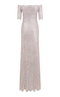 PINK LONG DRESS IN LACE WITH SILVER INDUCTION