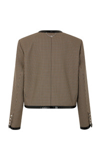 Building off of last season’s layered eclecticism, Julien Dossena channels a British beat, balancing jolts of grunge and a streetwise ease with vintage-inspired luxuries. Tailored from checked wool, Rabanne’s cropped jacket has a box-cut, long sleeves and four-pocket detailing. Choose accessories that complement the faux-leather trim and metallic buttons. PRODUCT DETAILS - Pre-Fall ‘25 - Button fastening - Composition: 100% wool; Trim: 50% cotton, 50% polyurethane - Dry clean - Designer Color: Pied de Poule - Imported