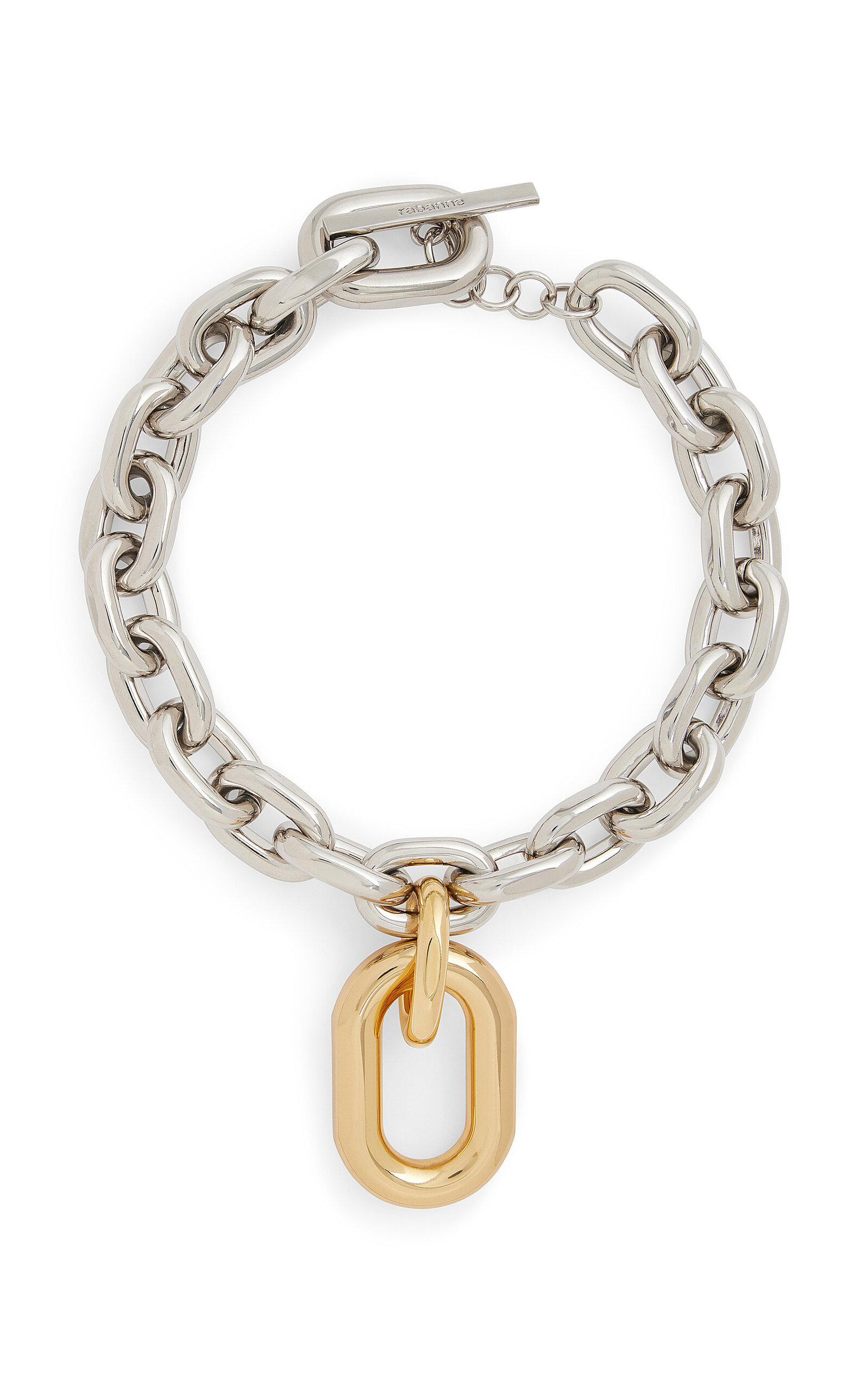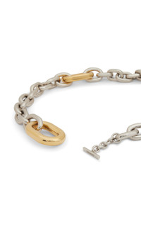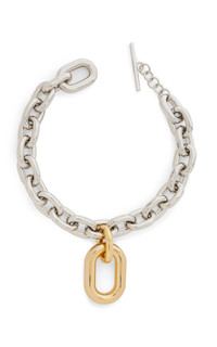 Tinged with his chic Parisian spirit, Julien Dossena returns with a lineup of jewelry and accessories in varied textures and materials that demonstrates the sensorial power of fusing contrasts. Cast from silver-tone metal, this toggle necklace features a chunky chainlink with a large gold pendant. PRODUCT DETAILS - Toggle fastening - Composition: 100% brass - Made in Italy SIZE & FIT - This item measures approximately 49cm