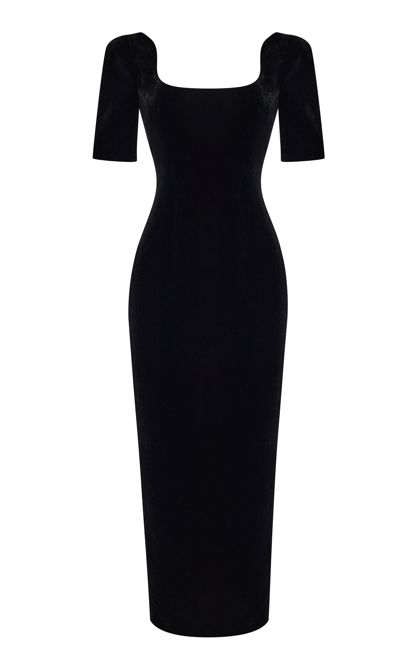 Scoop-Neck Velvet Midi Dress black