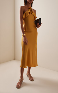 Exclusive Ruffled Silk-Satin Halter Slip Dress gold